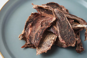 京都舞鶴産の新鮮な鹿肉を厳選して使用した、愛犬のためのジャーキーです。高タンパク質でありながら低脂肪なので、愛犬の健康維持をサポートします。また、無添加・無着色にこだわり、アレルギーを持つ愛犬にも安心して与えることができます。